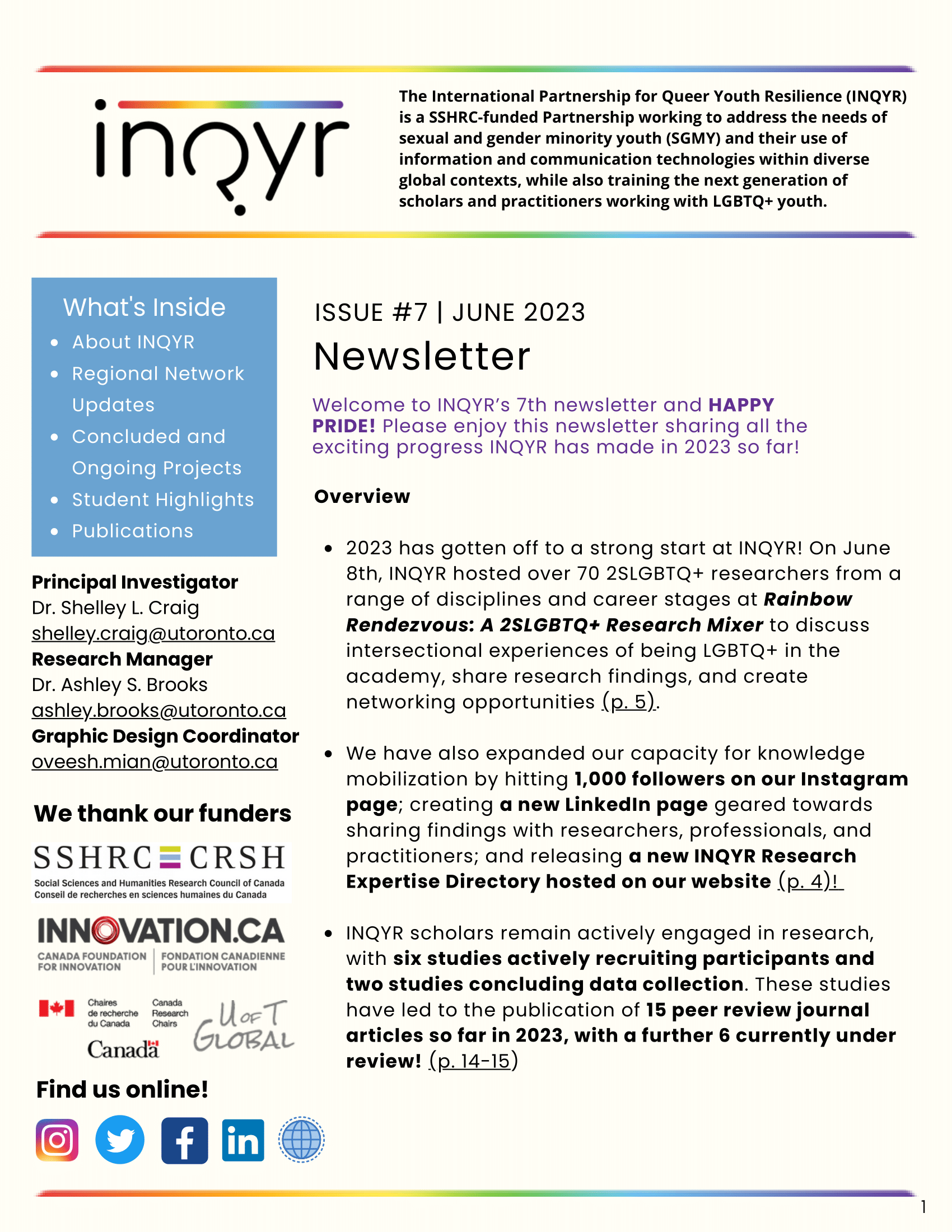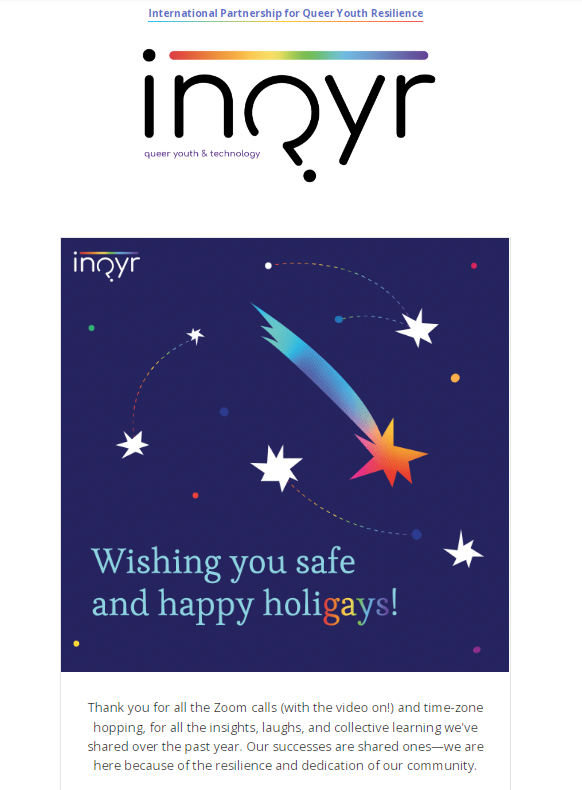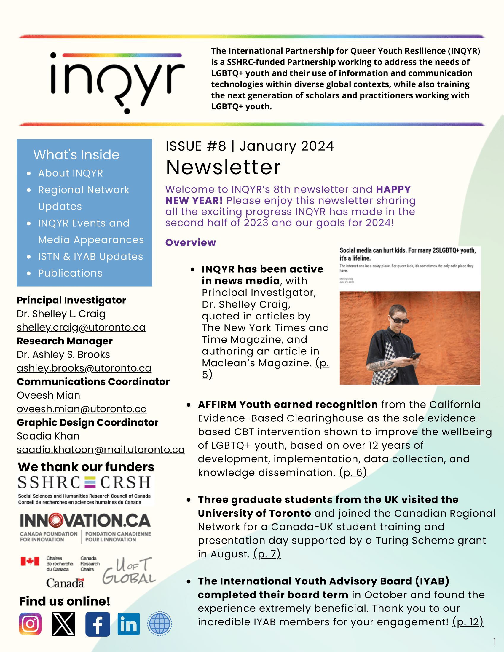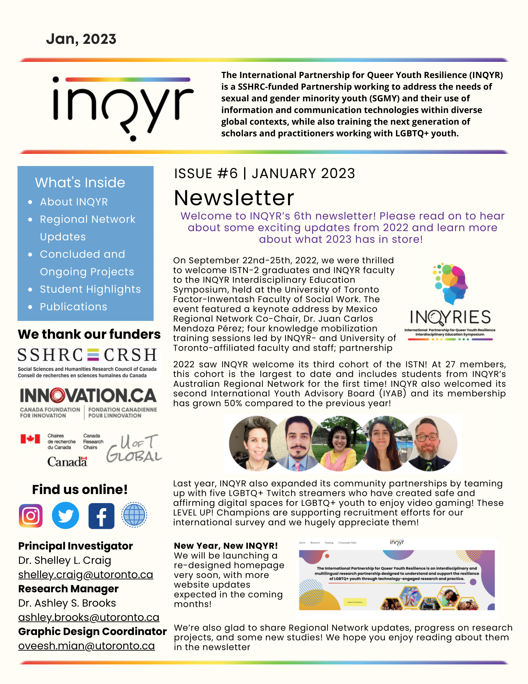 Newsletter Archive Summer 2025 Winter 2025 Summer 2024 Winter 2024 Summer 2023 Winter 2023 Summer 2022 Summer 2021 Winter 2021 Fall 2020 Fall 2019 Subscribe To Our Newsletter Join our mailing list to get updates about our work with LGBTQ+ youth and technology! Our newsletter includes: • Latest research publications• Resources and reports• Employment and education opportunities from our network• Events• Student spotlights• Partnership milestones First Name Last Name Email Address Subscribe We respect your privacy. Thank you!