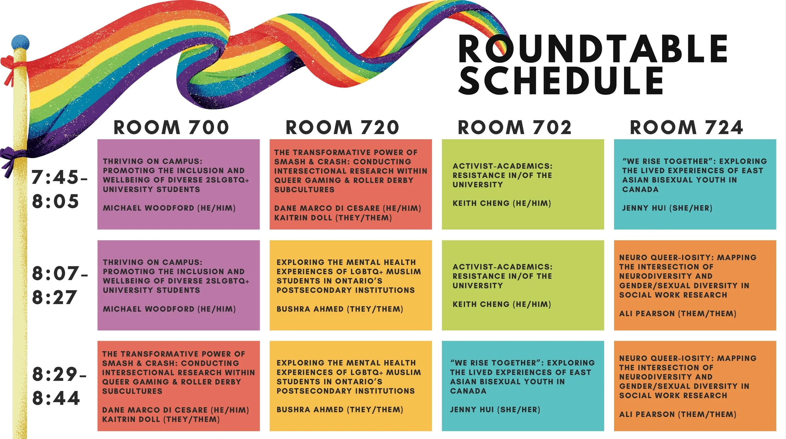 In a series of roundtable discussions, emerging and established queer researchers presented and discussed their intersectional queer research.